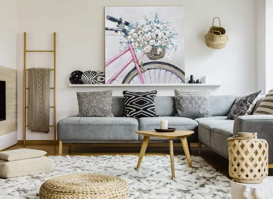 текстиль и декор для дизайна гостиной в скандинавском стиле