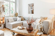 Диван       Светлая ткань       Уют и визуальная легкость